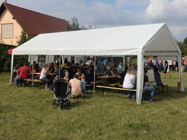 Samstags nach dem Frühstück fuhren uns Erwin Friedrich und Ernst Lutz mit den Planwagen in gemütlicher Fahrt zum Wiesenfest ins 23 km entfernte Erbach. Nach viel Schweiß, der bei diesem Wetter selbst beim Ausruhen floss, ging es am Nachmittag wieder zurück in die Herberge um im Schatten das kühle Nass und das wieder sehr gute Essen zu genießen. Mit allerlei Schrauberlatein und kühlen Getränken verbrachten wir noch einen schönen Abend.