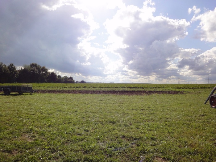 Mit 18 Traktoren wurde die Feldscheune der Fam. Duttenhöfer angefahren und unsere mitgebrachten Tische und Bänke wurden aufgestellt.